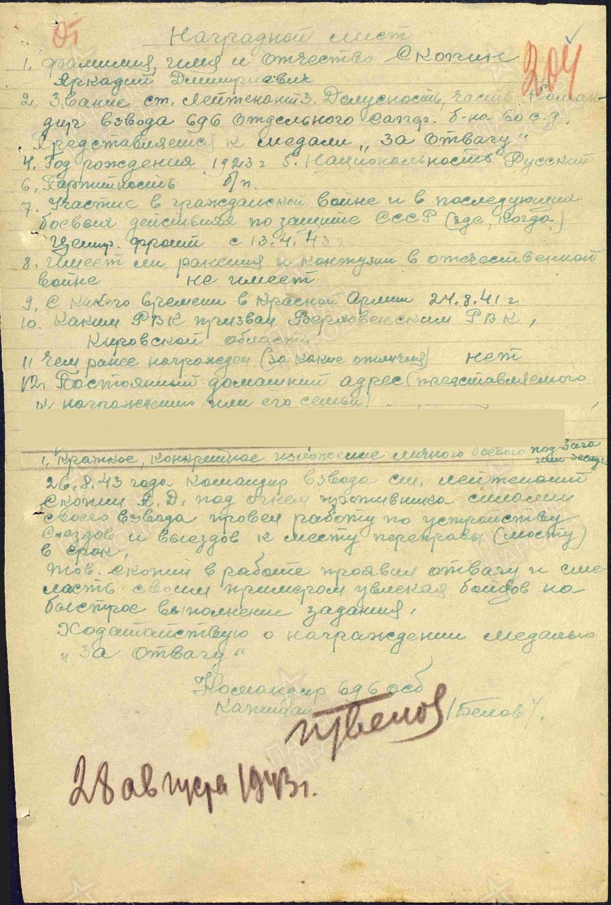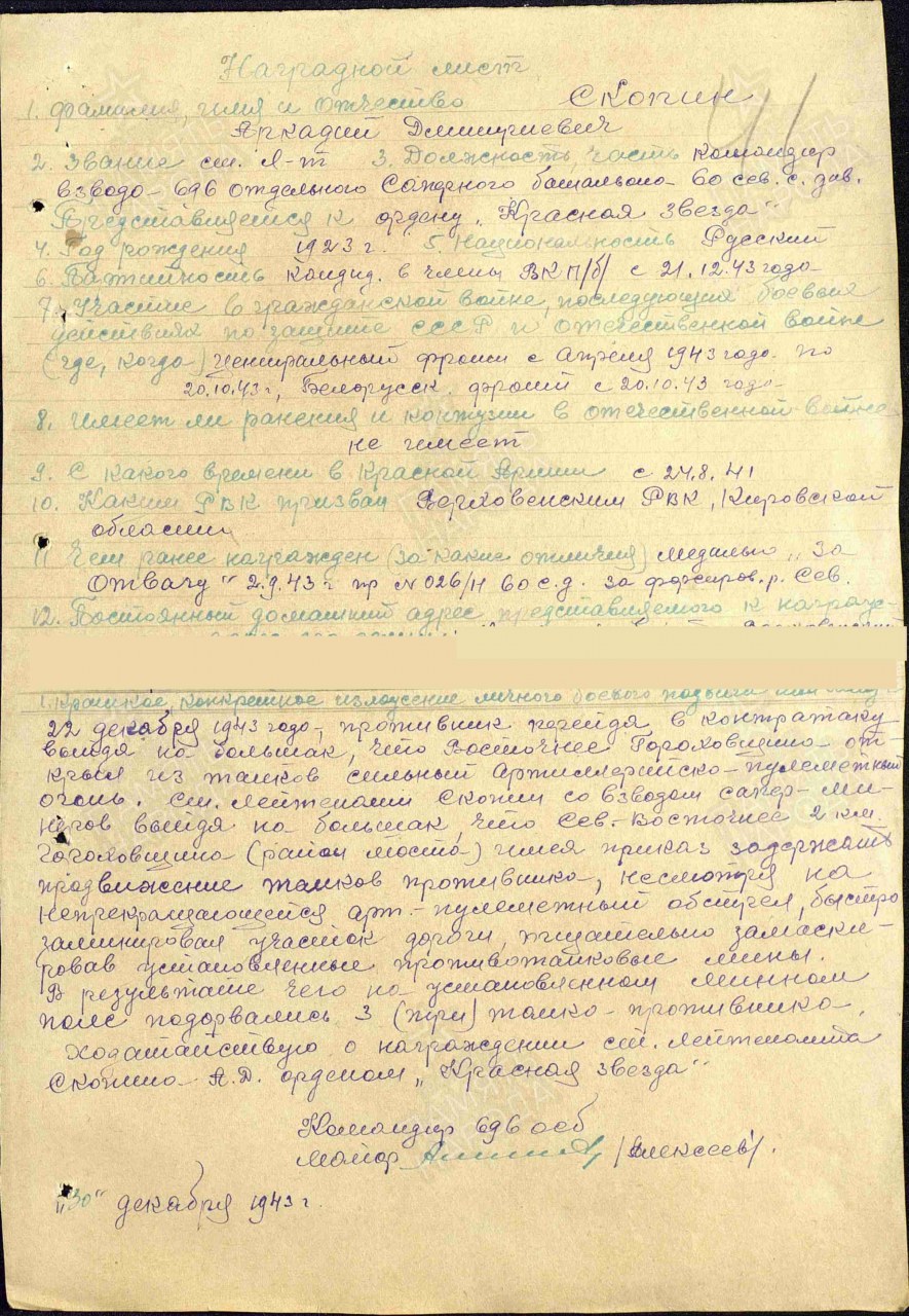 Дата и место призыва: __.08.1941 Верховинский РВК, Кировская обл., Верховинский р-н