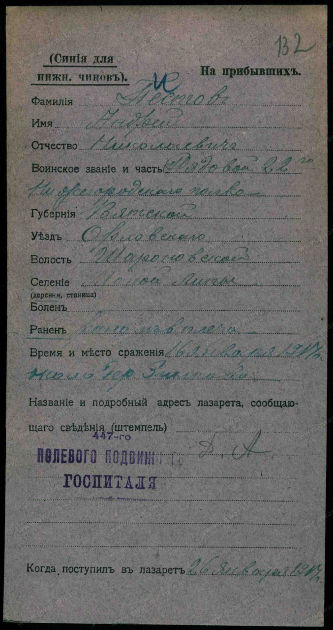 - Причина выбытия ранен/контужен