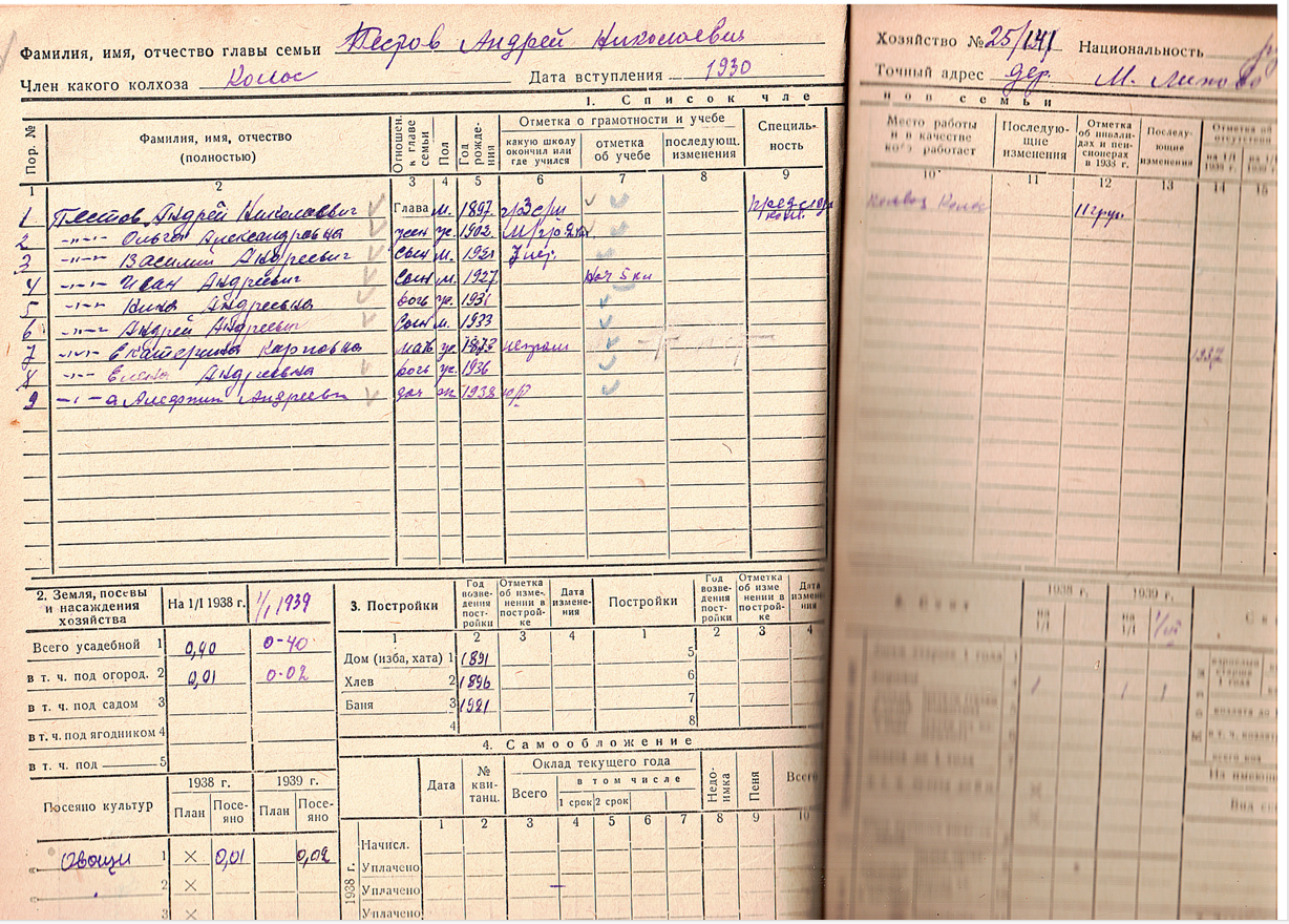 | Родился ребёнок: Пестов Василий Андреевич | 1921 | деревня Малое Липово (Козьминский) (Юрьянский район, Кировская область) - ныне не существует | Участник ВОв. красноармеец, в декабре 1941 г. пропал без вести (погиб в бою). |
