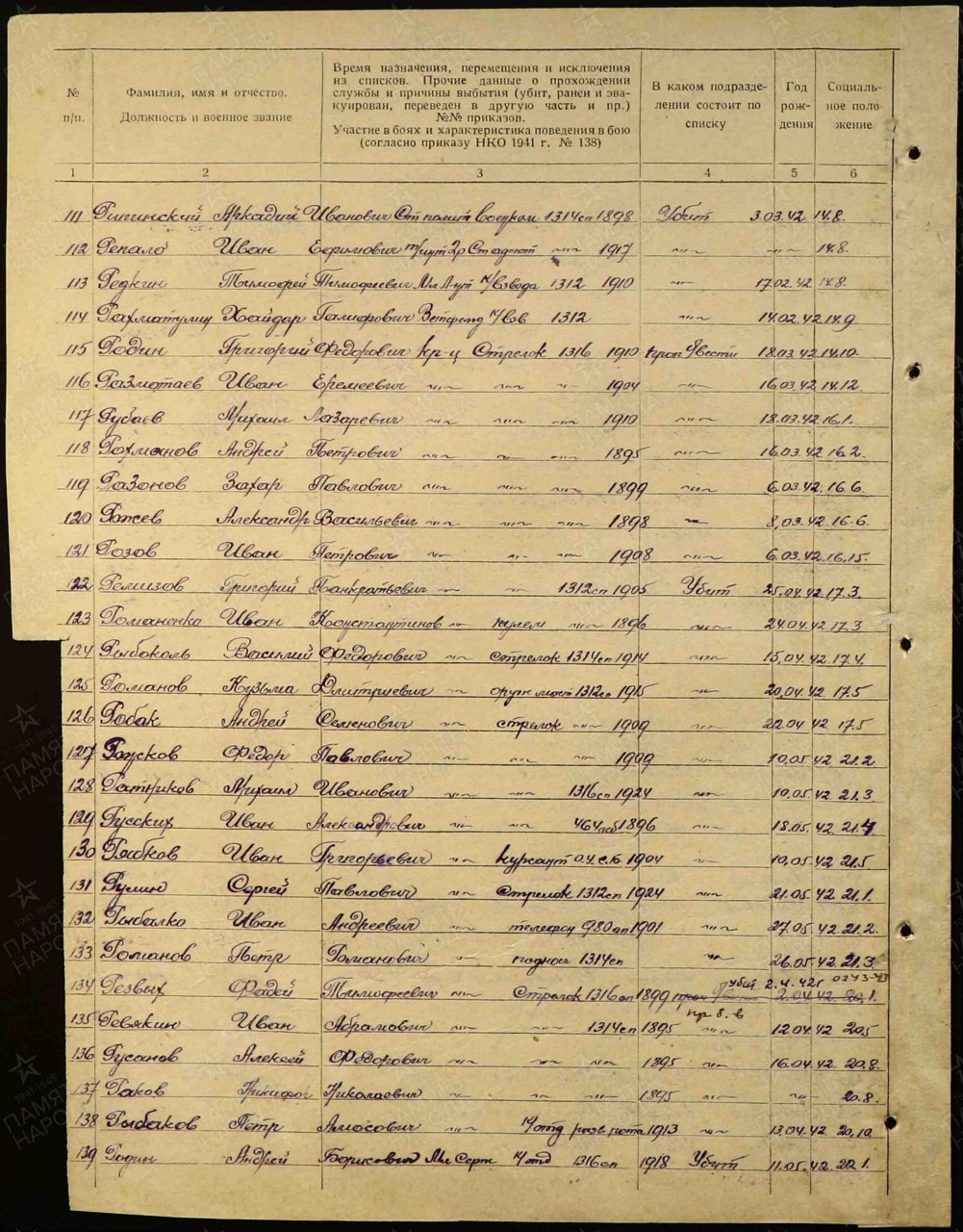 Источники информации: сайт Память народа, ЦАМО. Фонд: 58. Опись: 818883. Дело: 822; Фонд: 1082. Опись: 2. Дело: 56.