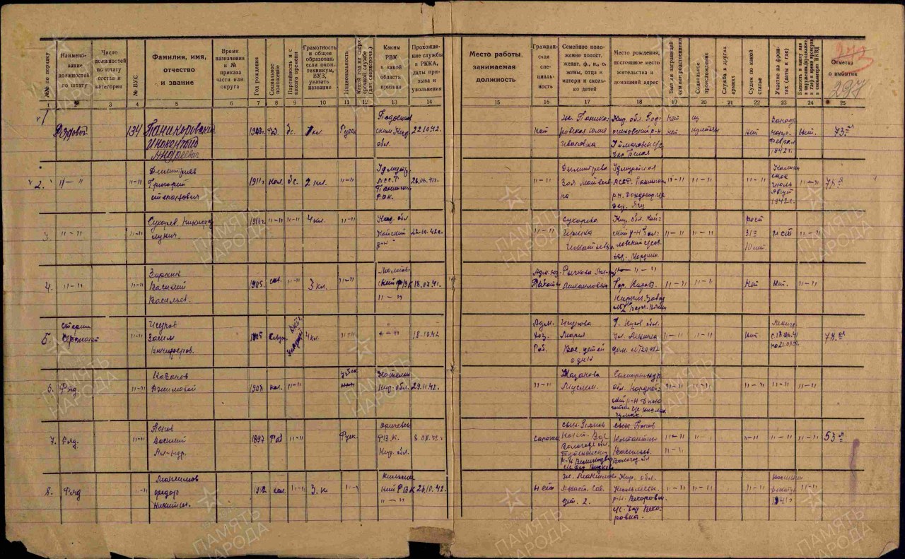 Исупов Засим (Зосим) Никифорович, 17.09.1905 г.р., уроженец Сунского района Кировской области. Перед мобилизацией проживал: г. Кирова, ул. Ленина, д. 120, кв. 2. Мобилизован Молотовским РВК Кировской области 18.07.1941 г. Старший сержант, пом. командира взвода 3 взвод 3-я рота 1 батальон 1067 сп 311 сд (есть в списке раздаточной ведомости за июль 1941 г.). Ранен 21.08.1941 г. Из СЭГ 1170 выбыл 23.08.1941 г. в ВСП 305/3803. ЭГ 1725 (до 25.11.1941 г.). Вновь призван Молотовским РВК 18.10.1942 г. Ст. сержант, 75 зсп. Выбыл 26.12.1942 г. в 2 гв. кк, 18 азсп (до 16.02.1943 г.), ст. сержант, старшина, 204 фзсп (09.07.1943 г.) Брянский фронт. Умер 08.11.1981 г.