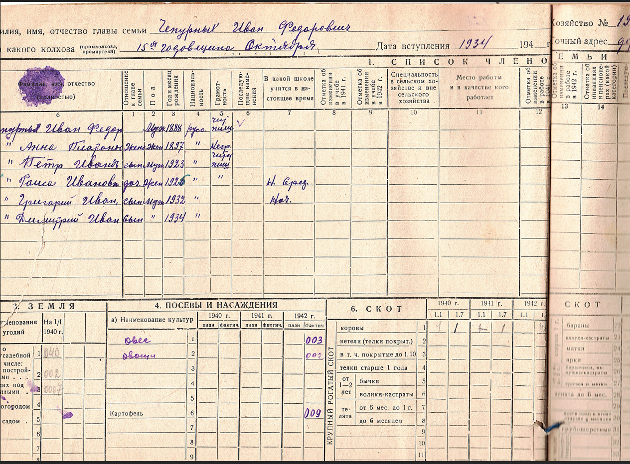 | Родился ребёнок: Чепурных Петр Иванович | 1923 |
