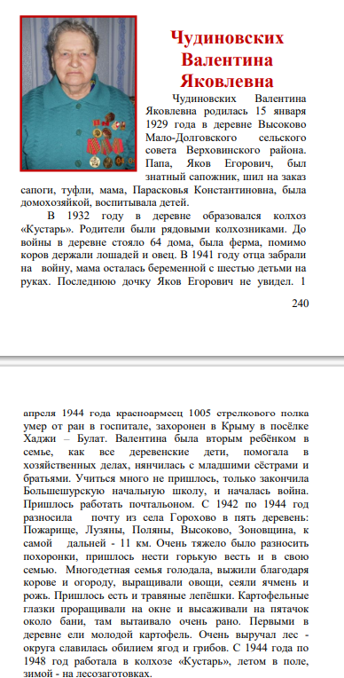 | Родилась | 15.01.1929 | деревня Высоково (Потаповская, Плюснины) (Юрьянский район, Кировская область) - ныне не существует |