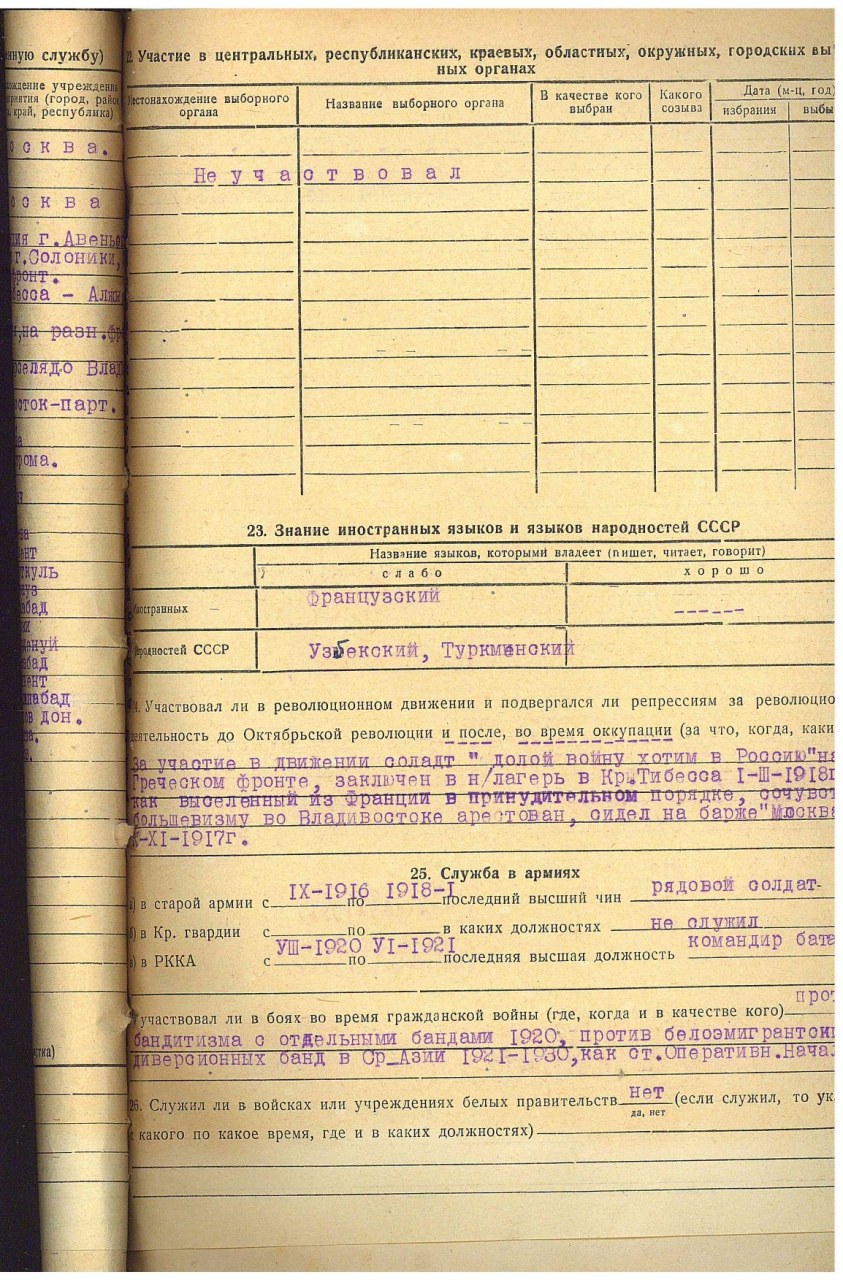 | участие в Первой Мировой войне | Сентябрь 1916 - Октябрь 1919 | Франция, Греция, Алжир | Русский экспедиционный корпус. |