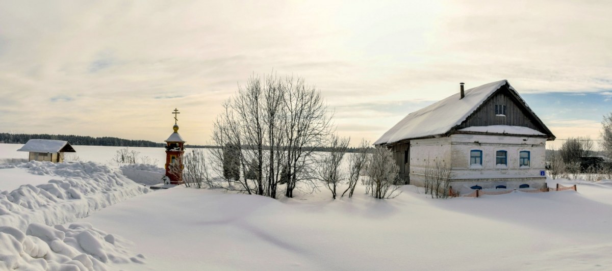 Колобовщина. Часовня "Неопалимая купина" иконы Божией матери и жилой дом. Февраль 2018 г. Фото Е. Чудиновских
