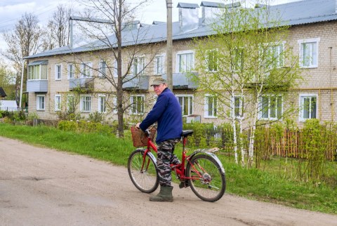 Аркуль. Жилой дом на набережной и местный житель. Май 2025 г. Фото Е. Чудиновских
