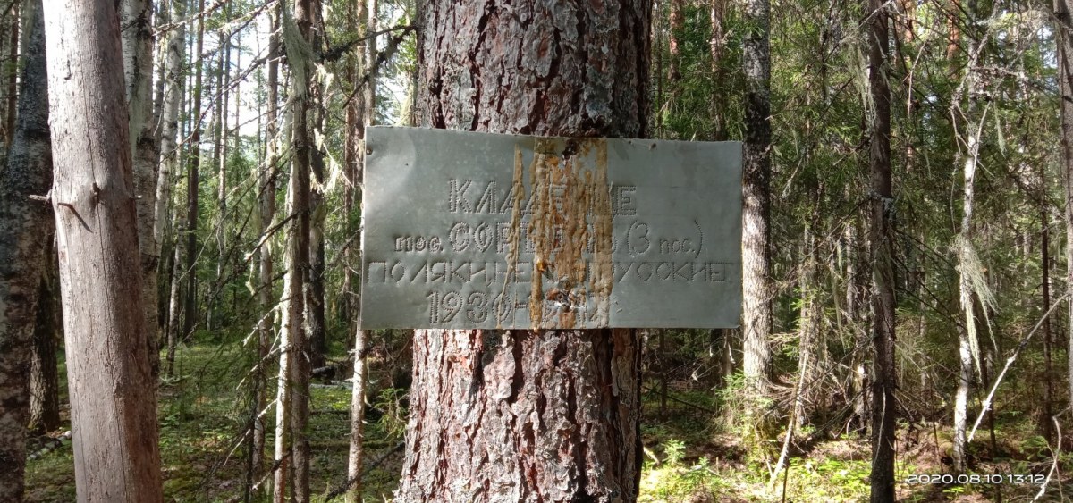 Кладбище Усть-Вель. Неточность в названии поселка допущена администрацией, установившей табличку.