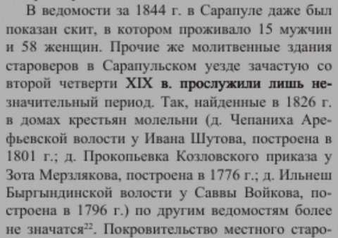 Информация о дате создания старообрядческой молельни в починке Ильнеше в 1796 году, по состоянию на 1826 год.