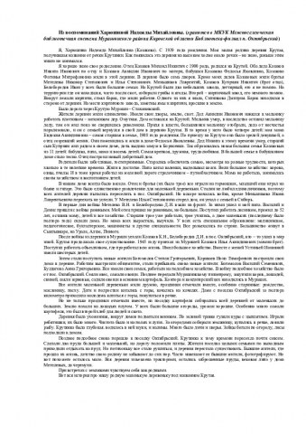 Из воспоминаний Харюшиной Надежды Михайловны. хранятся в МКУК Межпоселенческая библиотечная система Мурашинского района Кировской области Библиотека-филиал п. Октябрьский