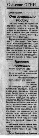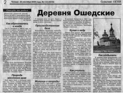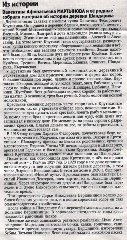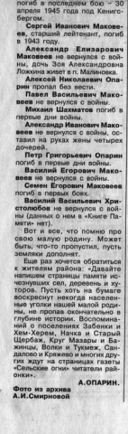 Скан с публикации в газете "Сельские Огни" от 22 сентября 2005 года. Из архива Шамаковой Валентины Алексеевны, п.Кикнур.