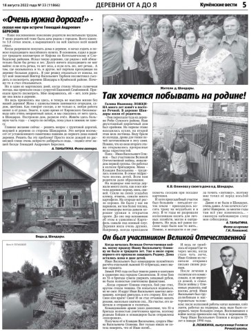 страница 5 газета "Куменские вести" от 05.05.2022 г. № 18 (11851)