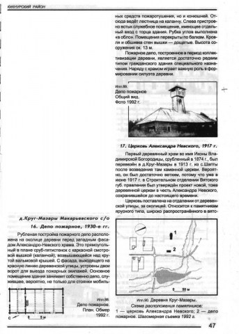 Информация о здании пожарного депо и церкви с. Круг-Мазары из брошюры "Материалы к своду памятников истории и культуры. Арбажский и Кикнурский районы." - 1999. Из архива Шамаковой Валентины Алексеевны, п.Кикнур.