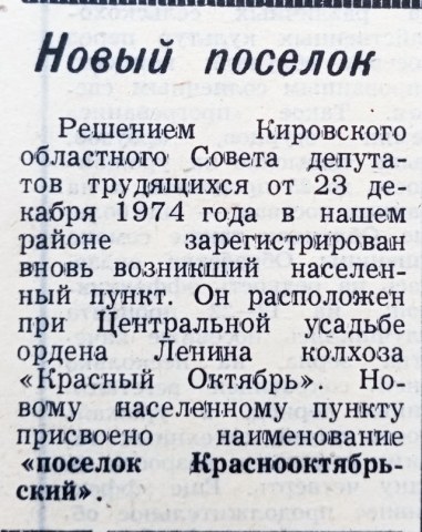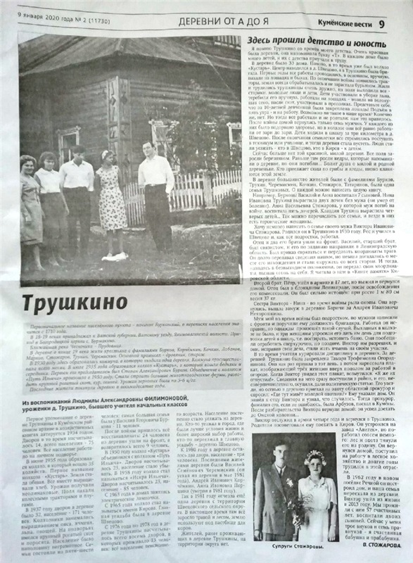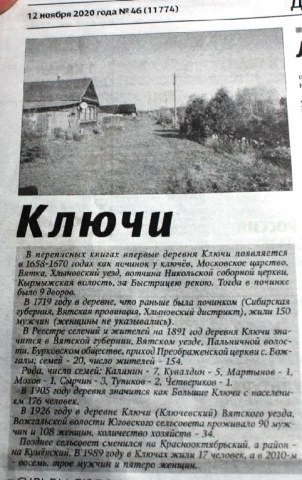 существующий н.п. Из газеты "Куменские вести" 2020г. № 46