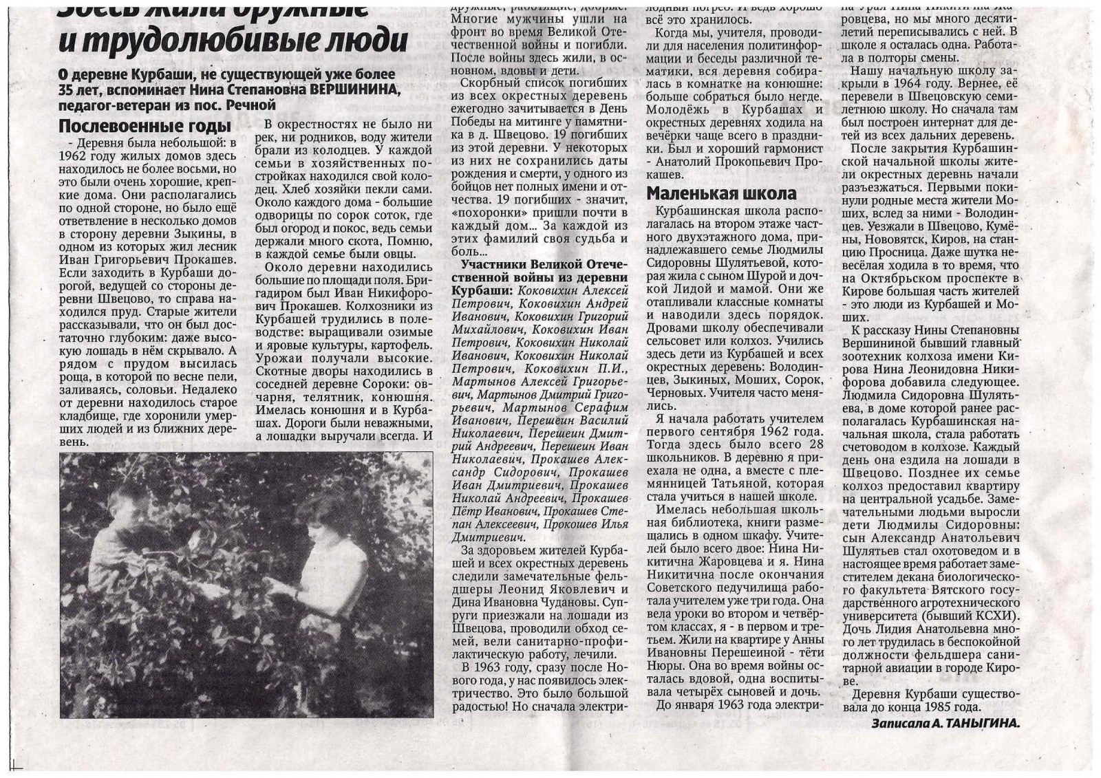 существующий н.п. Из газеты "Куменские вести" 2019г. № 49