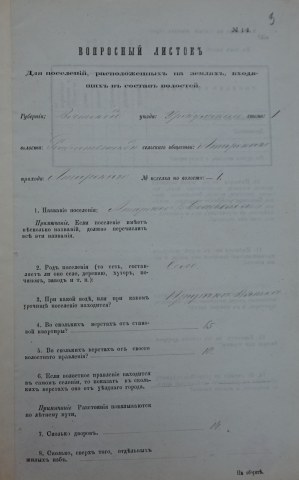 Опросный листок с. Атары 1877-1883 гг. (ЦГАКО 534-1-782) С.3об