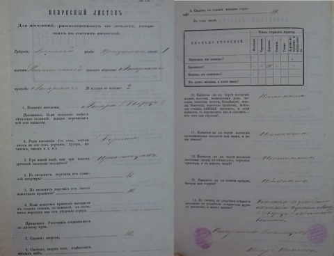 Опросный листок по деревне Атары (Дворец) 1877-1883 гг. ЦГАКО 534-1-782