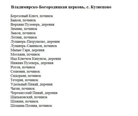 Приход Владимирско-Богородицкой церкви с. Кузнецово