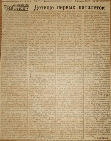 Статья из газеты "Знамя Октября" 20 февраля 1990 г.