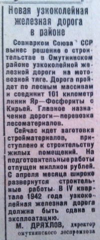 Новая УЖД в районе. Голос рабочего, №70 (2449) 22 марта 1941
