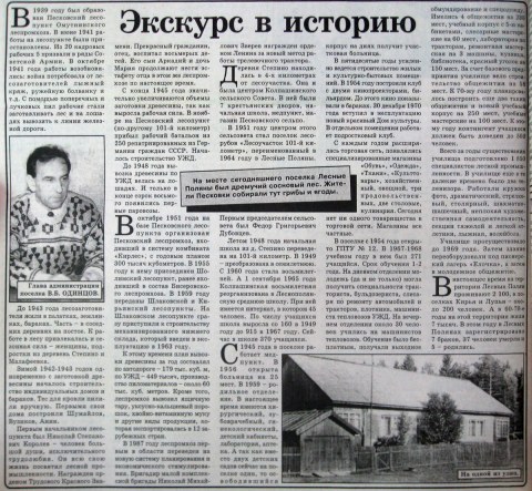 Экскурс в историю [п. Лесные Поляны]. Наша жизнь, №116, 117 (10700, 10701) 25 сентября 1999