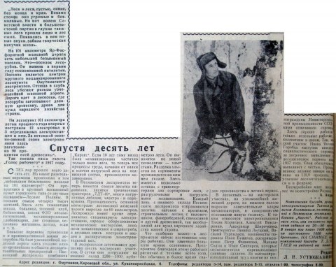 Спустя 10 лет [лесопункт 101 км]. Голос рабочего, №20 (4098) 10 февраля 1957