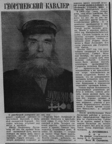 25 июля 1970 года заметка в газете об Иване Логиновиче Лусникове