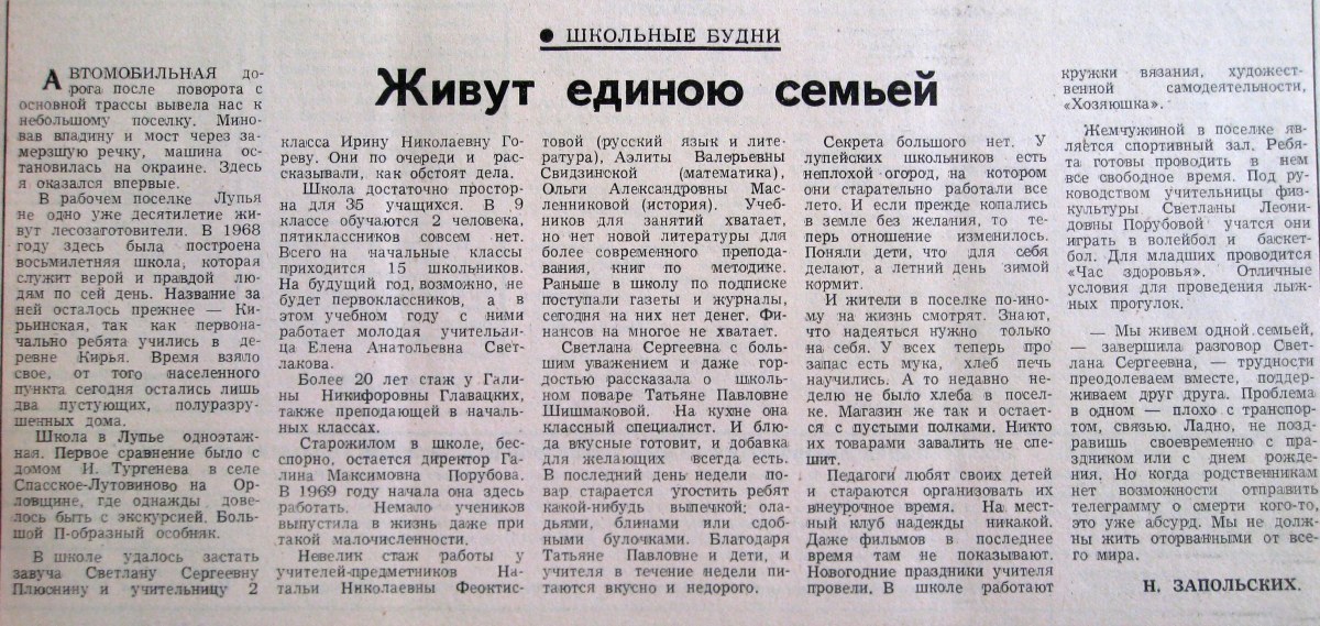 существующий н.п. Как живешь, Лупья? Наша жизнь, 18 января 1996