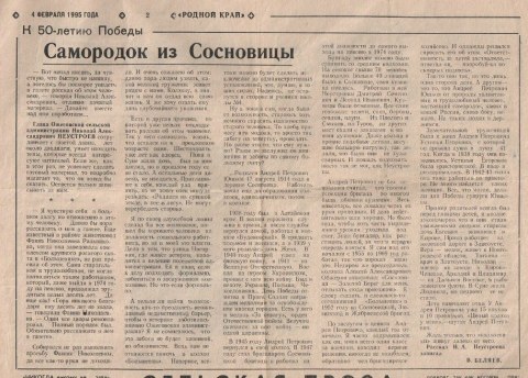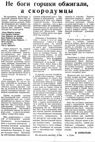 Газета Родной край 13.11.1993. О гончаре из д.Трапицыно.