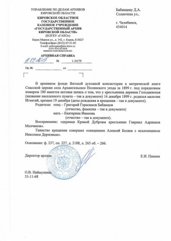 Справка из архива