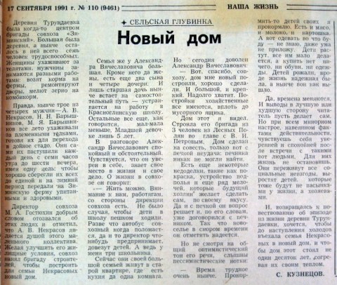 Статья из газеты "Наша жизнь", 1991 год