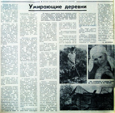 Поселок, которого нет на карте. Межрайонная газета «Ленинец», 18 октября 1962 г.