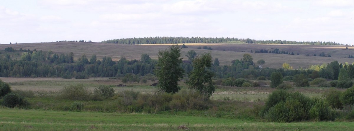 Заросшее поле между «верхним лесом» и деревней. На заднем плане тополя – это деревня.