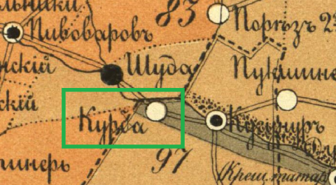 Фрагмент старой карты местности, периода 2й половины 19го-начала 20го в.в.