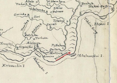 Месторасположение деревни на Геометрическом специальном плане Оренбургской губернии Мензелиского уезда 1798-1826 г.г.