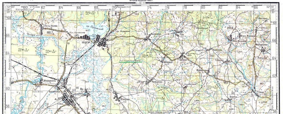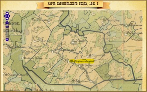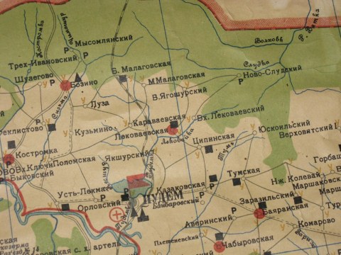 с. Мамылево на карте 1729 г. (Partie du territoire de Casan au nord du Kama et territoire d'Ourjoum)