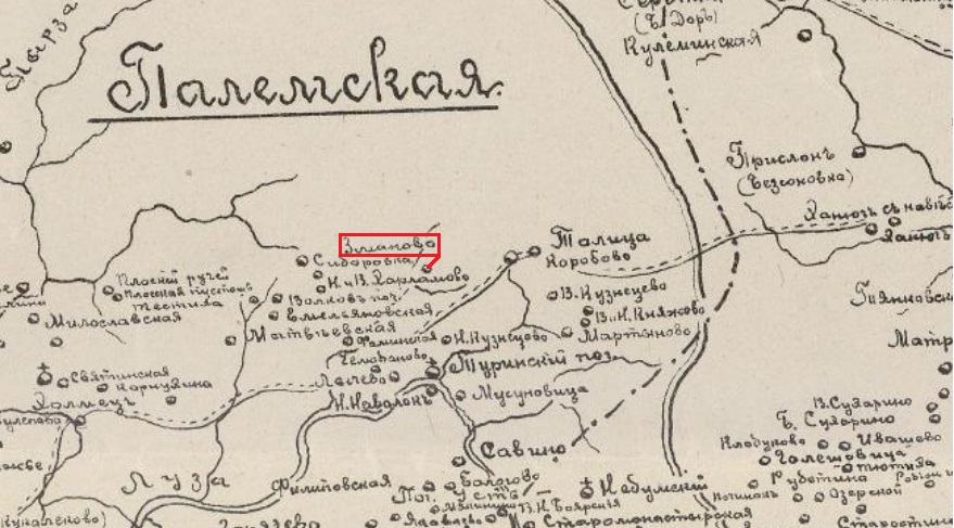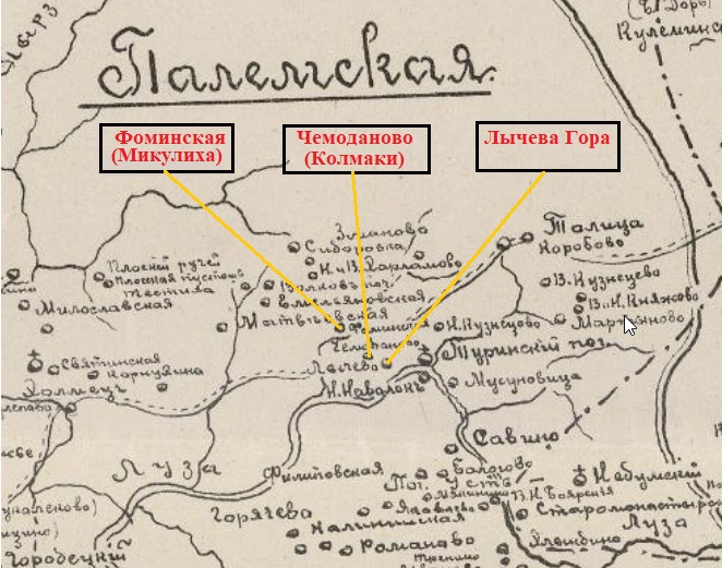Расположение Зманово на карте Великоустюгского уезда Вологодской губернии