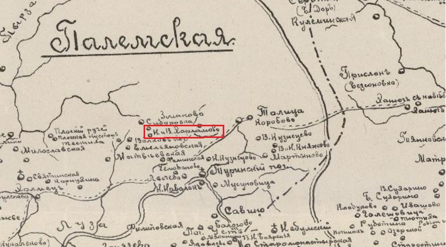 Нижнее и Верхнее Харламовы на карте Великоустюгского уезда Вологодской губернии (5 верст)