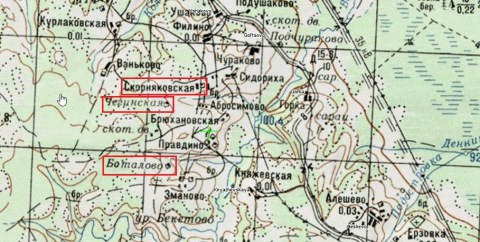 Расположение деревни Чегинская на карте СССР, масштаб 1 км