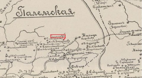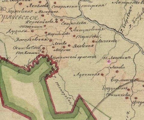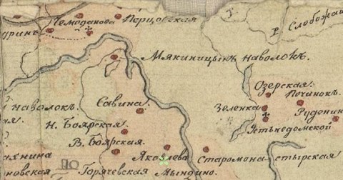 Деревня Давыдовская на Плане генерального межевания (название по центру скриншота)