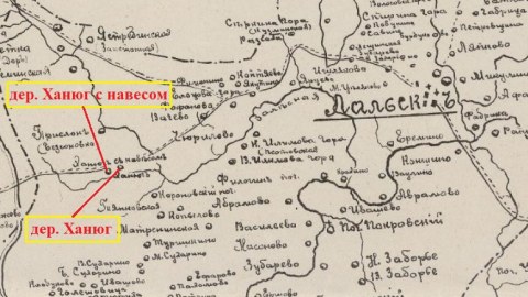 Фрагмент карты Стрельбицкого, листы 109 1875 г. и 128 1872 г., цифры при поселениях означают число дворов в десятках.