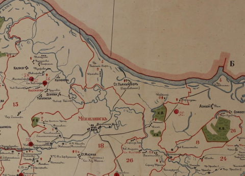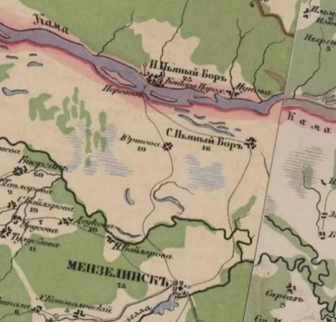 Фрагмент карты Мензелинского уезда Уфимской губернии второй половины XIX века.
