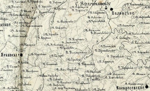 на карте 1888 г. Полянская (Ананьино) и Полянка (Волкова)