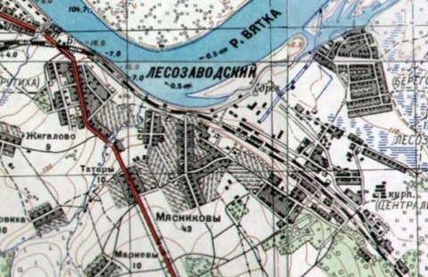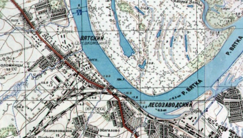 пгт. Вятский (Древкомбинат) на топо-карте 1950 г., 250 м
