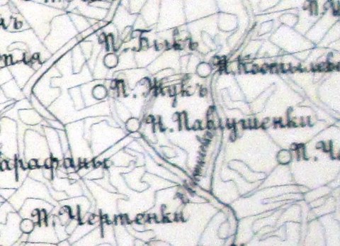 Часть карты Орловского уезда 1898 г. (3 в.), где видно поч. Блудный