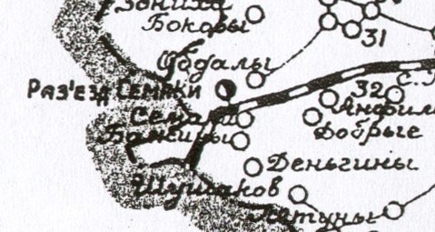 Бажины, Деньгины, Семаки и разъезд Семаки на карте Слободского района 1932 г.