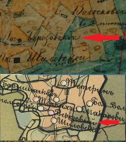 Починок Березовской на ПГМ нач. XIX века и карте 1888 года.
