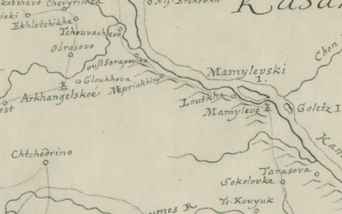 с. Мамылево на карте 1729 г. (Partie du territoire de Casan au nord du Kama et territoire d'Ourjoum)