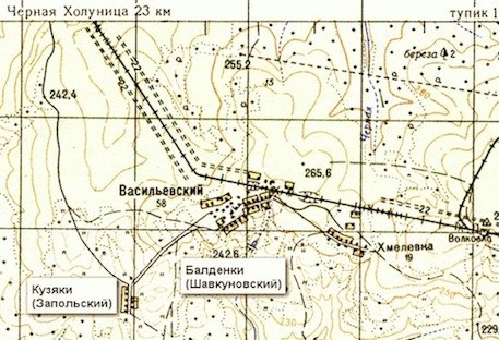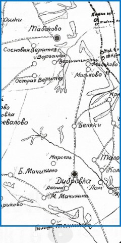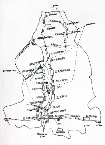 Карта окрестностей пос. Васильевский 1960-х гг. (из статьи В.И.Сычёва, деревни нанесены Т. Лалетиной)