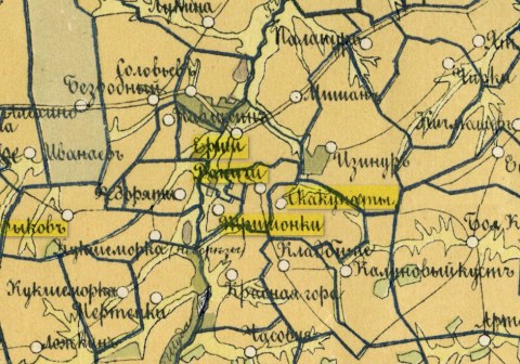Часть карты Яранского уезда 1891 года