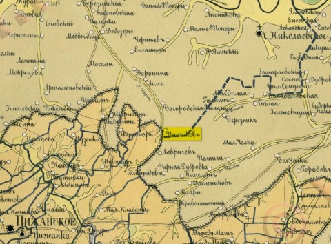 Фрагмент карты Яранского уезда, 3 в. (1891 г.) с деревней Жукого (Питиков)